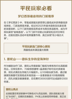 想省钱玩梦幻,就选这些职业,他们更看重你的时间和耐心,而不是你的钱包,当然,任何职业想玩到顶尖,都需要投入,但对于我们大多数玩家来说,玩得轻松,玩得长久,才是最重要的,选一个省心的职业,慢慢享受游戏吧。