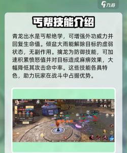 先看技能特点丐帮技能很全面,有爆发,有控制,也有生存,比如“亢龙有悔”,伤害很高,“醉饮江湖”,能控制敌人,所以,加点前,先想好,你常用哪些技能,然后,再决定属性分配。