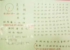 纸要用白纸,越大越好,笔最好用铅笔,因为容易滑动,在纸的中间,画一个大圆圈,在圆圈的上方,写上“是”和“否”,左边写“是”,右边写“否”,然后在圆圈周围,写上数字和字母,从0到9,还有A到Z,这样笔仙来了,就能指认了。
