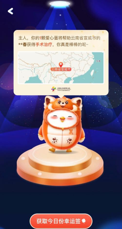 它的核心就是养小鸡,你领养一只小鸡后,要记得喂它,喂食需要饲料,饲料怎么来呢,你可以通过完成任务获得,比如,每天去店里付款,或者回答一些问题,完成任务后,饲料就到手了,然后喂给小鸡,它吃饱了,就会下蛋,这些蛋就是爱心蛋。