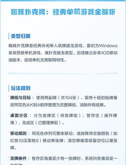 你想玩蜘蛛牌吗,但不知道怎么开始,其实它并不难,我来告诉你,首先打开游戏,你会看到十列牌,最下面那张是正面,其他都扣着,你的目标很简单,就是把同花色的牌,从K到A,按顺序收齐,收齐一套,它就会自动消失,当所有牌都收完,你就赢了。