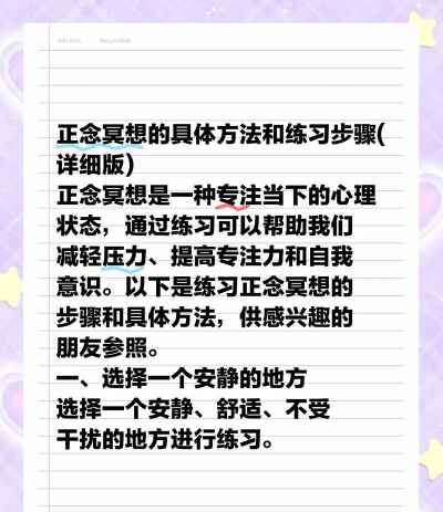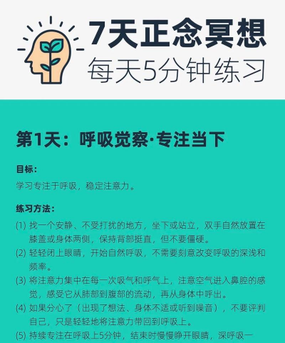 除了数呼吸,还有很多方法,比如,身体扫描游戏,你从脚趾开始,慢慢感受每个部位,还有,听声音游戏,你闭上眼睛,仔细听周围的声音,不判断好坏,只是听,这些玩法都很简单,随时随地都能做。