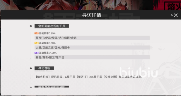 明日方舟终末地熔火灼痕寻访这个卡池的详细攻略就分享这么多,这个限时限定卡池,总体而言还是非常值得去抽取的,不论是6星核心,亦或者其他五星角色,都有其战略价值,值得去培养一番。