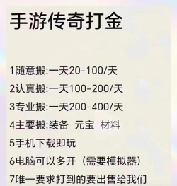 手游传奇打金,需要一点耐心,也需要一些方法,选对职业和地图,掌握基本技巧,找到靠谱的变现方式,你就能慢慢积累财富,当然,游戏只是娱乐,别太沉迷其中。