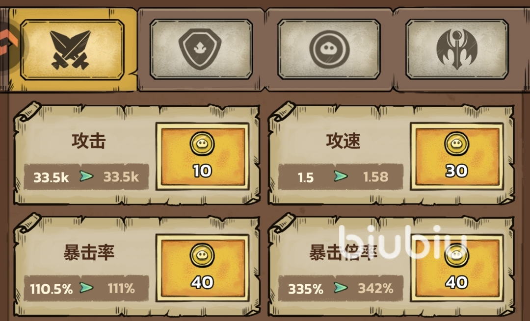 关卡外升级天赋、装备升级等