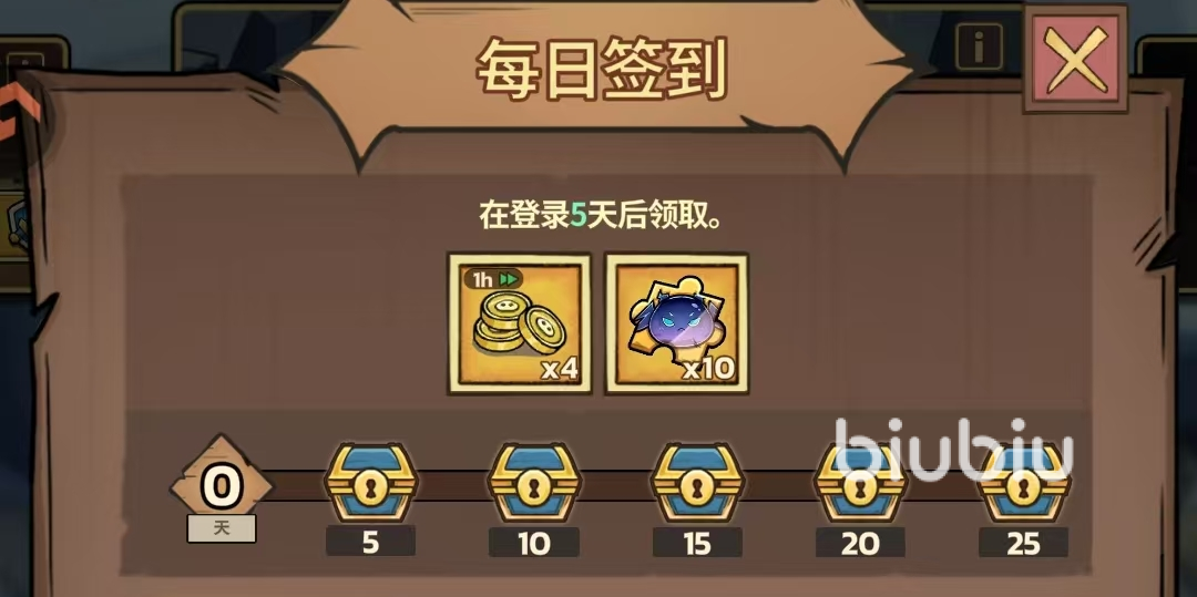 通关第1章第10波解锁后,通过每日签到和完成简单任务领取各类钥匙、经验水晶和金币奖励。