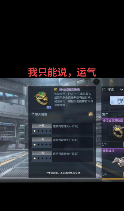 拿到戒指后,记得装备上,别放在仓库吃灰,平时做任务时,戴着它效率高,打排位也能用,不过,效果是全局的,不用刻意去触发,另外,注意戒指期限,有些是永久的,有些是限时的,到期了会消失,记得及时续费,或者换新的。