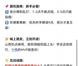 记住一些常用牌型很重要,比如“四归一”、“清一色”等,它们能大幅增加番数,打牌时要留意对手的出牌,推测他们需要的牌,同时保护自己的关键牌,刚开始玩不用追求高番,先熟悉流程更重要。
