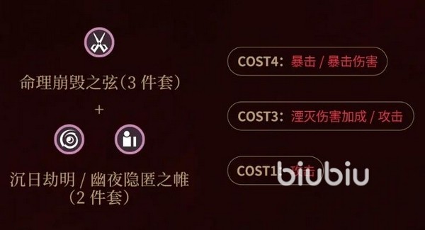 一般来说千咲声骸推命理3件套搭配沉日劫明两件套,采用43311搭配,c4暴击爆伤,c3湮灭伤害,c1攻击。武器最好是专武,没有的话常驻大剑。配队方面主流搭配是卡提+夏空+千咲。或者与3.1推出的爱弥斯搭配再配上琳奈。