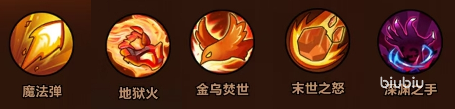 技能选择:魔法弹+地狱火+金乌焚世+末世之怒+深渊之手