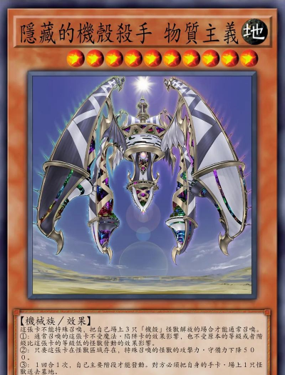 先看机壳的核心玩法机壳卡组的关键,在于它的怪兽效果,机壳怪兽,通常需要解放自己场上的怪兽,才能特殊召唤,听起来有点亏,对吧,但是,它们登场后,往往有强大的压制力,所以,玩机壳,你得学会计算,什么时候该解放,什么时候该保留资源。
