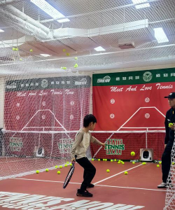 然后说步伐配合不能光动手,脚也要跟上,想接左边的球,左脚就向左踩,想后退接高球,就踩后箭头,步伐要轻快,别死死站着,和真实网球一样,需要不断调整位置,这样接球才从容。