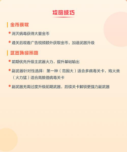 游戏里金币很重要,它能升级主武器和副武器,主武器建议优先升级,因为它是持续输出,副武器虽然威力大,但有冷却时间,升级主武器能明显提升清怪效率,特别是面对成群的小病毒时,扫射起来特别爽,副武器则用来对付精英怪,或者 boss 出现时,给它来个致命一击。