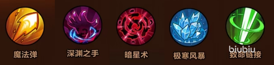 技能选择:魔法弹+深渊之手+暗星术+极寒风暴+致命链接