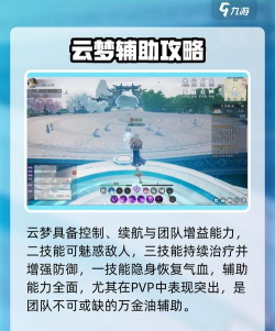 最后看实战技巧实战中站位很重要,云梦不能太靠前,容易被集火秒掉,也不能离太远,治疗够不到队友,所以,保持中距离最好,技能释放看时机,治疗留给关键人,输出用来补伤害。