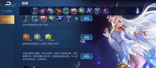 出装方面,貂蝉需要冷却缩减,也需要一定的坦度,通常,先出冷静之靴,减少技能冷却,然后出时之预言,增加血量和法强,接着出博学者之怒,大幅提升伤害,之后可以出极寒风暴,进一步减冷却,还能增加物理防御,最后补上辉月或者贤者的庇护,提高生存能力。