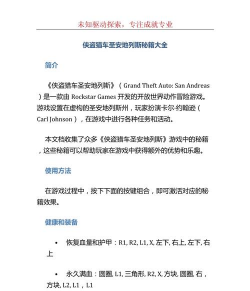 武器与战斗系统武器不用买太多,够用就行,初期手枪和冲锋枪是主力,后期再换高级的,瞄准时多用掩体,减少自身伤害,爆头能快速解决敌人,记得多买防弹衣,生命值低了就吃东西,或者使用零食回血,特殊能力要善用,麦可的子弹时间,适合精准射击,富兰克林的驾驶慢动作,能轻松过弯,崔佛的狂暴模式,近战无敌。