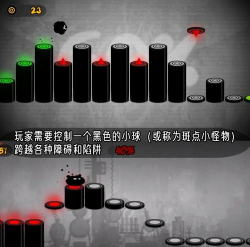 游戏的核心玩法很简单,就是控制一个小黑球,在节奏中跳跃,你需要点击屏幕,让小球跳起来,避开各种障碍,比如尖刺和陷阱,不过,操作虽然简单,但节奏感很重要,你必须跟着音乐的节拍跳,否则很容易掉下去,刚开始玩,建议你先别追求速度,多听几遍音乐,找到跳跃的感觉。