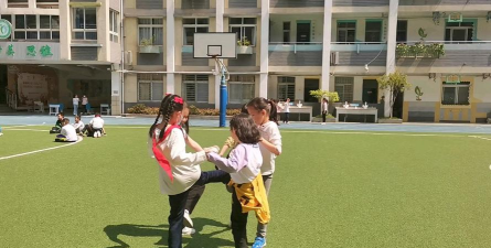 再看基本动作每个人抬起自己的右腿,把脚踝搭在右边人的膝盖上,这样就连成了一个圈,看起来就像个花篮,所以叫编花篮,然后大家单腿站立,一起拍手,同时念口诀,比如“编、编、编花篮”。