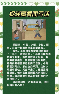 捉迷藏是一种经典游戏,它简单易学,充满乐趣,既能带来欢乐,也能锻炼能力,下次朋友聚会时,不妨试试这个游戏,找回童年的快乐。