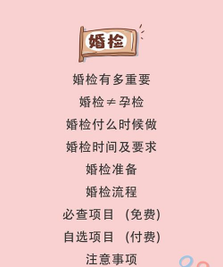 3、婚检常见问题答疑很多人会担心,检查会不会很尴尬,其实医生都很专业,放轻松就好,还有人问,婚检是免费的吗,是的,大部分地区有免费婚检政策,具体可以咨询当地民政局,如果查出来有问题怎么办,别慌张,及早发现,才能及早干预和治疗,这对双方都是负责任的表现。