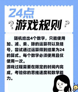 规则听起来容易,但做起来需要点思路,四张牌是随机给的,数字可能很大,也可能很小,关键是要灵活,比如给你4、4、10、10,你可以这样算,(10×10-4)÷4,结果就是24,再比如3、3、8、8,可以算8÷(3-8÷3),这需要一点巧思,核心就是尝试各种组合。