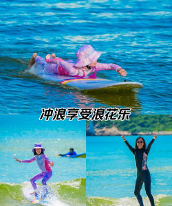 冲浪板是必须的,新手建议用长板,浮力大更好上手,防晒泥一定要涂,海南的太阳很厉害,不然很容易晒伤,防寒服看水温,冬天海水有点凉,穿一件会舒服很多,脚绳千万不能忘,它能防止板子被浪冲走,也是重要的安全装备。