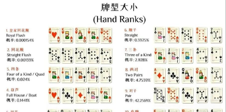 牌型从大到小,是这样排列的,皇家同花顺最大,然后是同花顺,四条,葫芦,同花,顺子,三条,两对,一对,高牌最小,记住这些牌型,是玩德州的基础,不然,你连自己赢了都不知道。