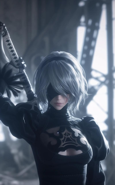 先看角色形象设计2b的造型非常独特,她总是穿着一身黑色连衣裙,眼睛被一条黑色眼罩蒙住,这让她看起来既神秘又冷酷,不过,她的性格其实很复杂,在执行任务时,她果断坚决,但私下里,她也会流露出温柔的一面,这种反差感,让很多玩家都喜欢上了她,她的武器是一把太刀,战斗动作流畅又帅气。