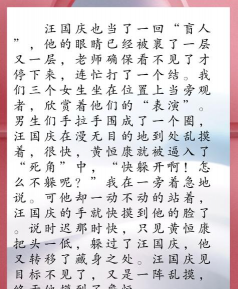 “盲人”开始摸索时,其他人可以悄悄移动,但要小心别发出声音,增加游戏的难度和趣味性,当“盲人”抓住一个人时,可以摸摸他的头发、衣服或者脸。