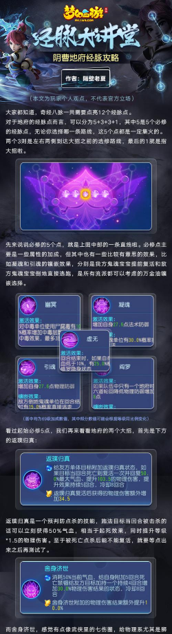 先看经脉的核心定位地府在团队里,主要作用是辅助,所以经脉加点,首先要考虑团队需求,比如你是喜欢PK,还是专注日常任务,这两种玩法,加点思路完全不同,如果搞错了方向,效果就会大打折扣。