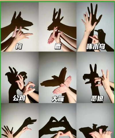 这是最经典的部分,你可以用手,做出小狗或小鸟的形状,然后对着光源,墙上就会出现影子,你可以让影子动起来,比如小狗在跑,小鸟在飞,孩子通常会很喜欢,而且学得很快。