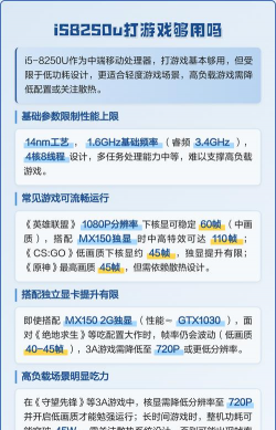 很多人买了电脑,都会好奇,自己的配置能玩什么游戏,特别是i58250u这颗处理器,它到底能带来怎样的游戏体验呢,其实,这个问题很常见,毕竟,谁都不想买了电脑,结果游戏卡成幻灯片,对吧,今天,我们就来聊聊,这颗处理器在游戏方面的真实表现。