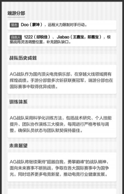 先看ag战队的整体实力,在cf手游联赛里,ag是老牌强队,他们历史成绩不错,拿过不少冠军,队伍打法很有特点,进攻节奏很快,防守也很严密,团队配合默契,这是他们的优势,不过最近赛季,竞争非常激烈,ag也面临挑战,需要不断调整。