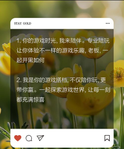 除了技术,你的个人风格也很重要,因为,陪玩不仅是玩游戏,更是提供情绪价值,所以,你要告诉玩家,你是什么样的人,比如,你是幽默风趣的,还是温柔耐心的,你是技术流大神,还是娱乐搞笑主播,这些描述,能让玩家想象出,和你一起玩游戏的场景,比如,你可以写“相声级陪玩,保证不冷场”,或者“人狠话不多,带你稳稳上分”,找到自己的特色,然后把它放大。