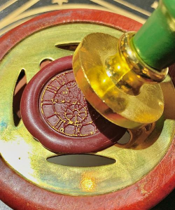 蜡粒完全融化后,就可以倒蜡了,这里有个小技巧,倒蜡的位置要准,一般会有一个圆圈提示,把融化的蜡液,稳稳地倒在圆圈中心,倒得太少,印章盖不完整,倒得太多,蜡液会溢出来,影响美观,倒好之后,就是关键的盖印步骤了,从工具架上,选取你心仪的印章图案,对准蜡液中心,稳稳地按下去,停留几秒钟,再缓缓提起,一个带着清晰浮雕图案的火漆印就诞生了。