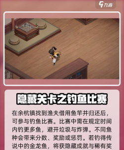 先看第一个,钓鱼小游戏怎么玩,这个在剧情里经常出现,关键是掌握节奏,鱼竿晃动时别急着收线,等鱼咬钩再动,不然鱼会跑掉,多试几次就熟了,记住要耐心。