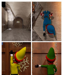 第三关有点特别,要帮圣诞老人送礼,但是,烟囱被堵住了,这时,你不能硬闯,而是,要找梯子,梯子藏在屋顶后面,找到后,架在墙上,然后,圣诞老人就能爬上去,顺利送出礼物了。