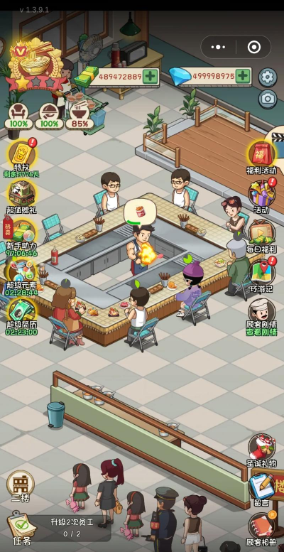 赚到金币后,你可以升级设备,比如换更快的煮锅,也可以解锁新食材,比如毛肚和虾滑,这样能吸引更多顾客,记得及时清理餐桌,保持店铺整洁,还能完成每日任务,获取额外奖励,让你的小店越来越红火。