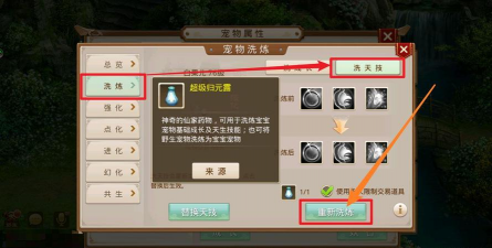 洗点需要用到道具,这个道具叫归元露,归元露怎么获得呢,可以通过活动获取,也可以在商城购买,有了归元露之后,打开宠物界面,选择要洗的宠物,点击洗点按钮,然后,使用归元露即可,洗点之后,宠物的等级不变,但,所有属性点会重置,你可以,重新进行分配。