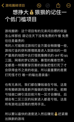 除了打宝,还能靠搬砖赚钱,就是重复刷金币,或者材料,然后批量出售,这个比较枯燥,但收入稳定些,代练升级也行,帮别人练号,赚取服务费,不过很耗时间,而且账号有风险,需要双方谈好细节。