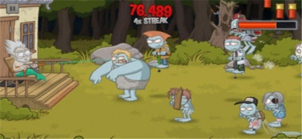 1、白天的时候,爷爷会从相对安全的基地出发,踏入被僵尸占据的街区,持续射击僵尸。