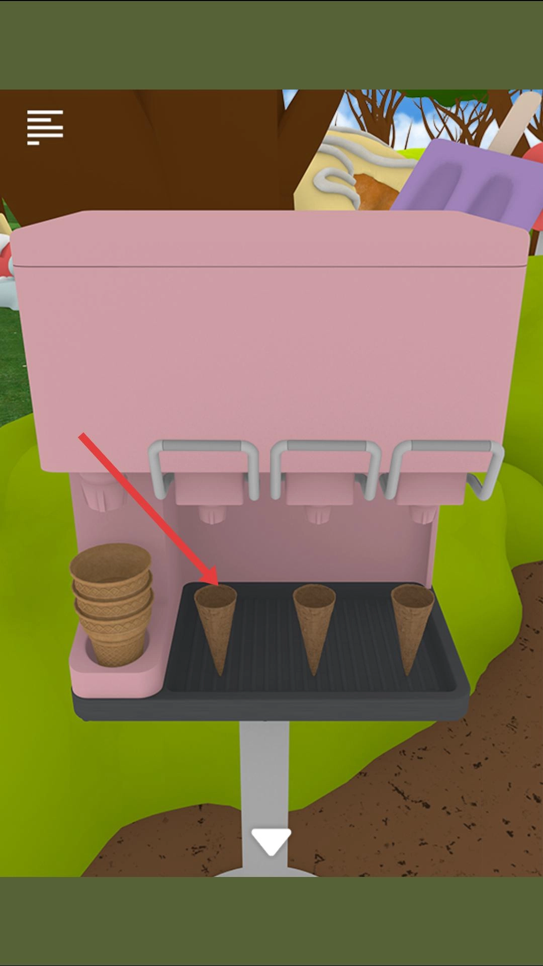3、找到冰淇淋机,把空甜筒放到对应的位置,操作机器制作冰淇淋,制作完成后获取道具,帮助后续的探索。