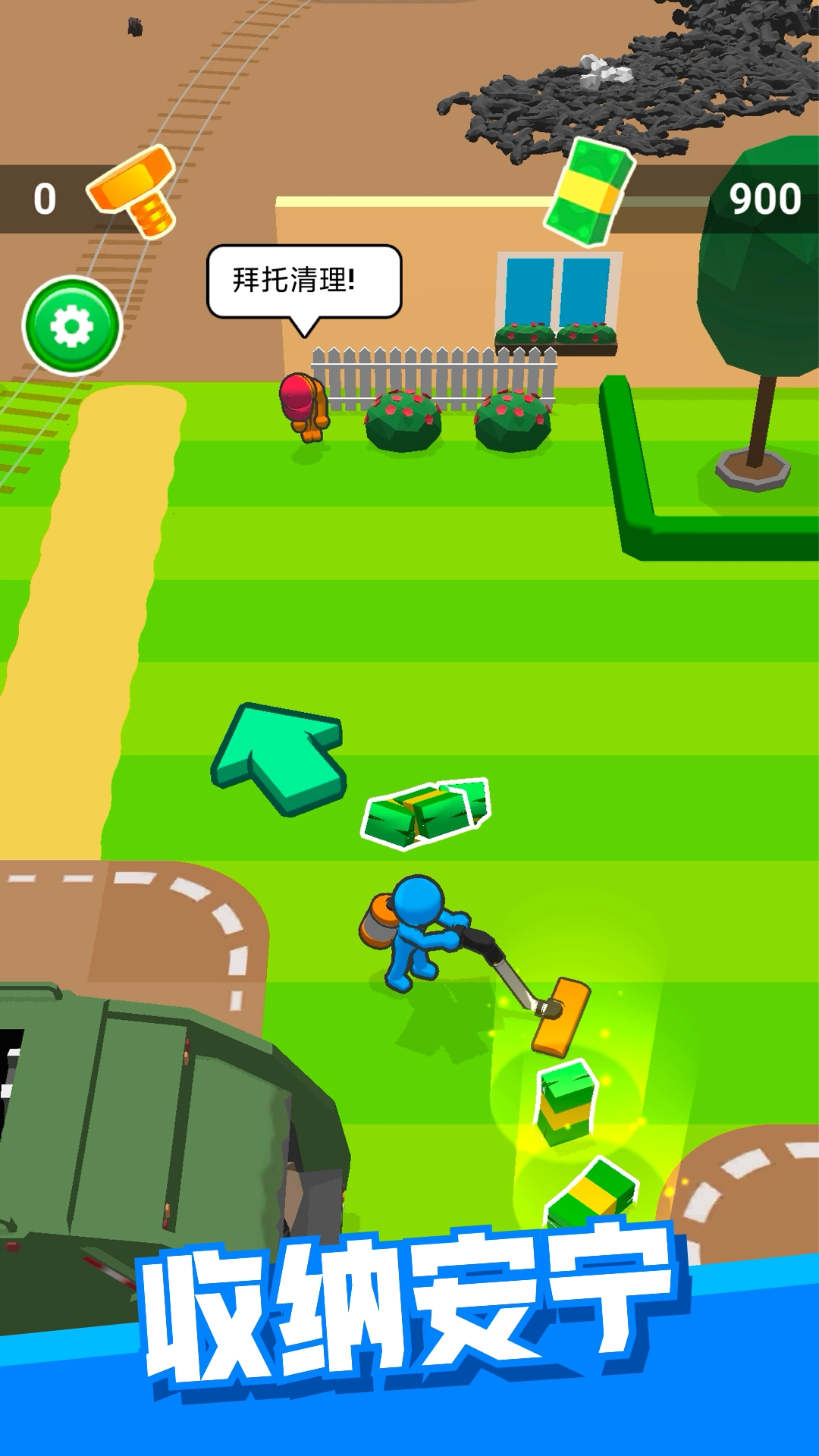 垃圾清洁大师:场地里满是垃圾,橡皮人需要拿起清洁工具,把眼前的垃圾都清理干净。部分关卡的场地上有绿钞,玩家拾取它们后,就能解锁并购买更棒的清洁工具。看着原本脏兮兮的场地逐渐变得干净整洁,视觉上也是一种不错的享受呢!
