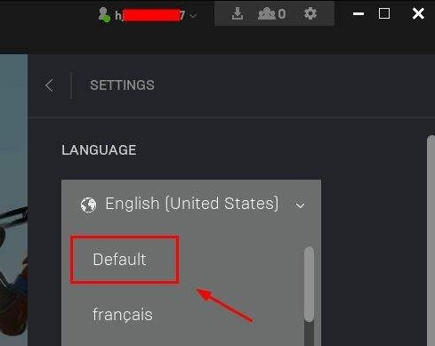3、弹出语言选择的下拉菜单后,选择“default”选项,即可将语言设置为中文,具体操作可参考图示。