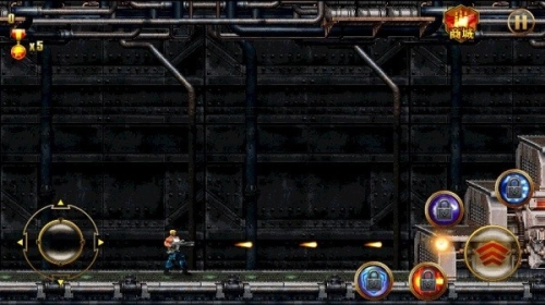 2、操控角色在关卡中向前推进,精准射击以对抗敌人,灵活躲避敌方攻击,并借助地形优势来推进关卡进度。