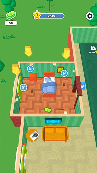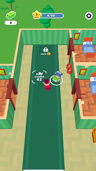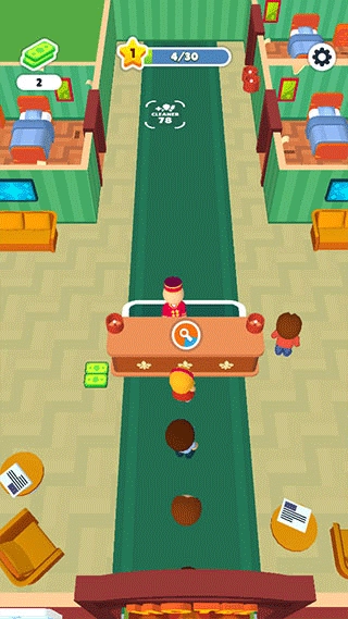 3、为客人安排好房间,他们退房后,要及时进行清理打扫,这样才能继续接待下一批客人。只需移动小人靠近待清理的区域,就能自动完成清理工作。
