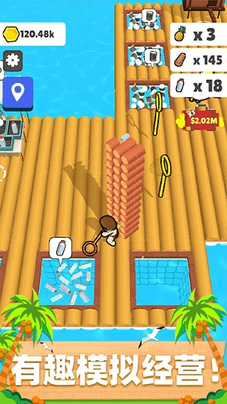 3、新奇有趣的元素。玩家可以通过培养宠物来协助收集资源,同时还得留意鲨鱼的突然袭击,这些新奇有趣的元素为传统的经营玩法增添了更多多样性。
