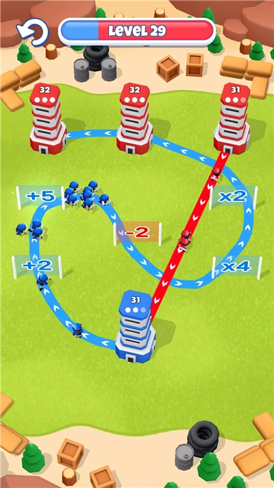 《高塔战争(TowerWar)》是一款休闲简单的战术类游戏。玩家需凭借游戏的玩法扭转局势,赢得战争。滑动屏幕即可进入战斗,看着你的小战士消灭敌人,通过技巧与精准度调配可爱的小部队,以此守住阵地并战胜敌军。