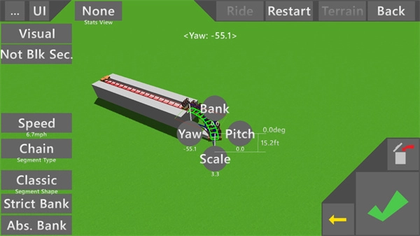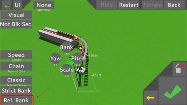 4、点击“Rel.Bank”按钮,我们可以让轨道以地图或上一节轨道为基准进行倾斜;